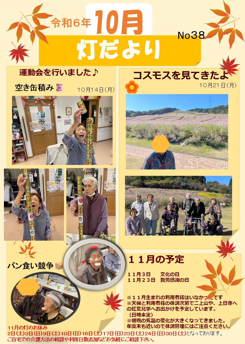 少人数デイの灯では、職員がたえず利用者の皆さんにお声がけし、1日中利用者さん方の笑顔や笑い声が絶えることなく元気に過ごされてます♬