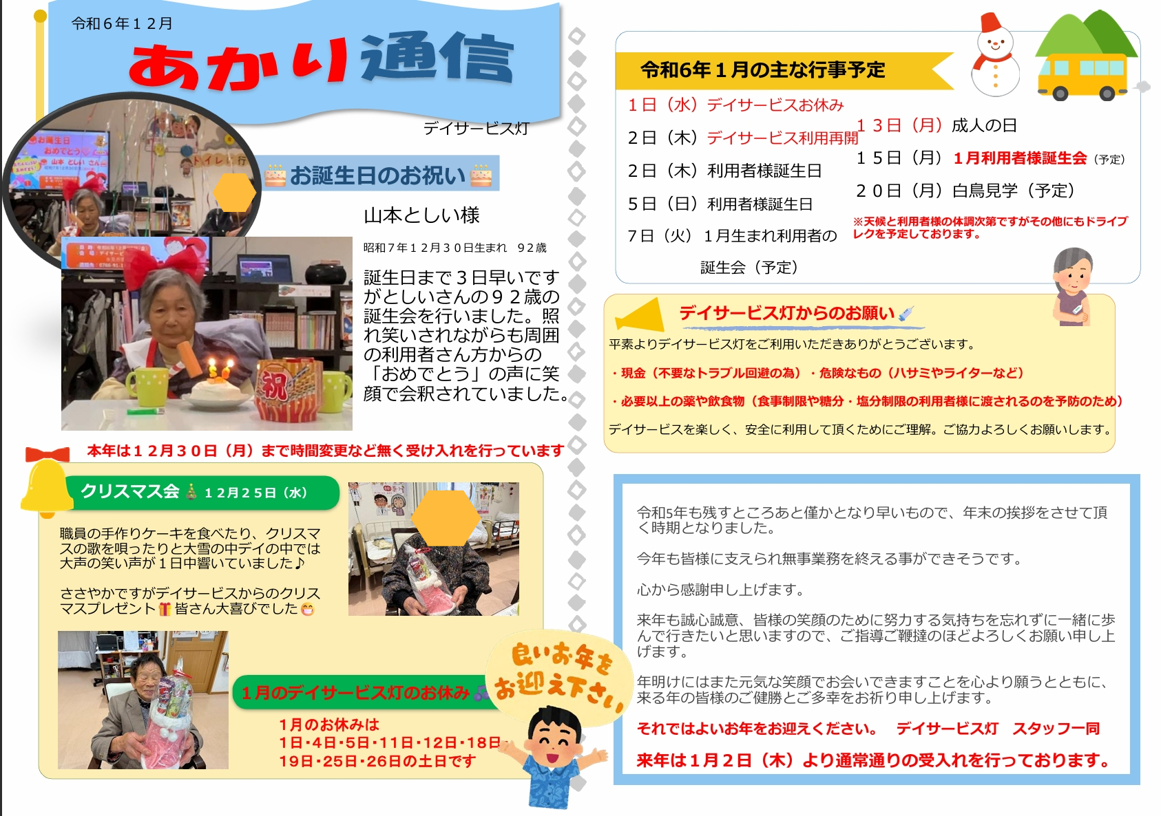 あかり通信12月号 更新しました。 本年も1年間ありがとうございました。